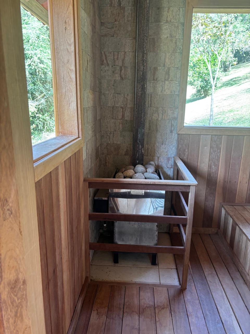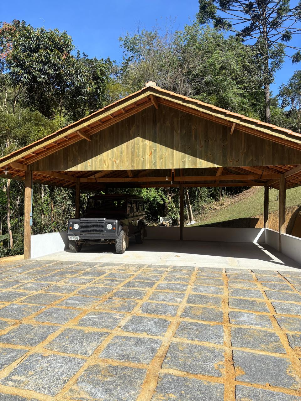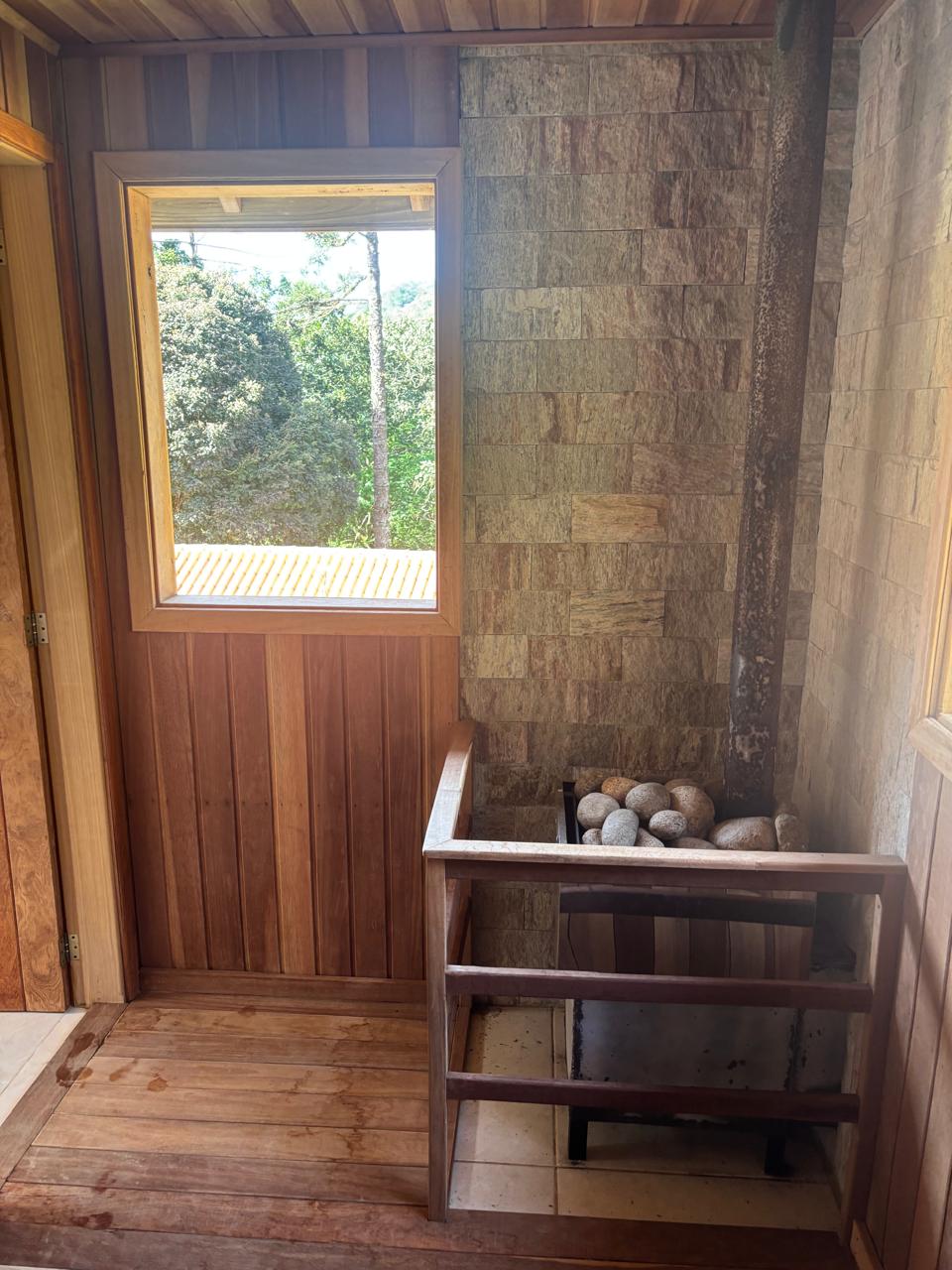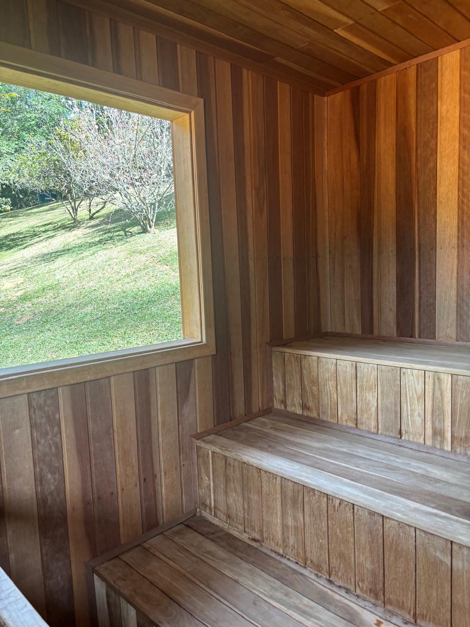 Na infraestrutura, há garagem coberta com capacidade para até 3 veículos, além de construções auxiliares como sauna a vapor com banheiro de apoio e um lenheiro.