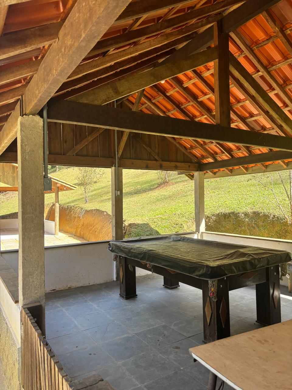 A área de lazer é um dos destaques, com espaço de lazer coberto em estilo aberto, integrando salão de jogos e convivência. A propriedade também dispõe de um córrego que permeia a propriedade proporcionando momentos de descanso e lazer em meio à natureza.